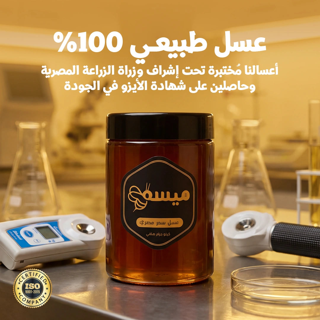 عسل ميسم حاصل على شهادة ISO 9001:2015 واللي بتأكد إن كل خطوة في الإنتاج من استلام العسل لحد التعبئة والشحن بتتراجع بمعايير دولية. وده معناها إن كل برطمان بيوصل لبيتك بنفس النقاء، نفس الجودة، ونفس الأمان وأنك بتاخد عسل طبيعي 100%